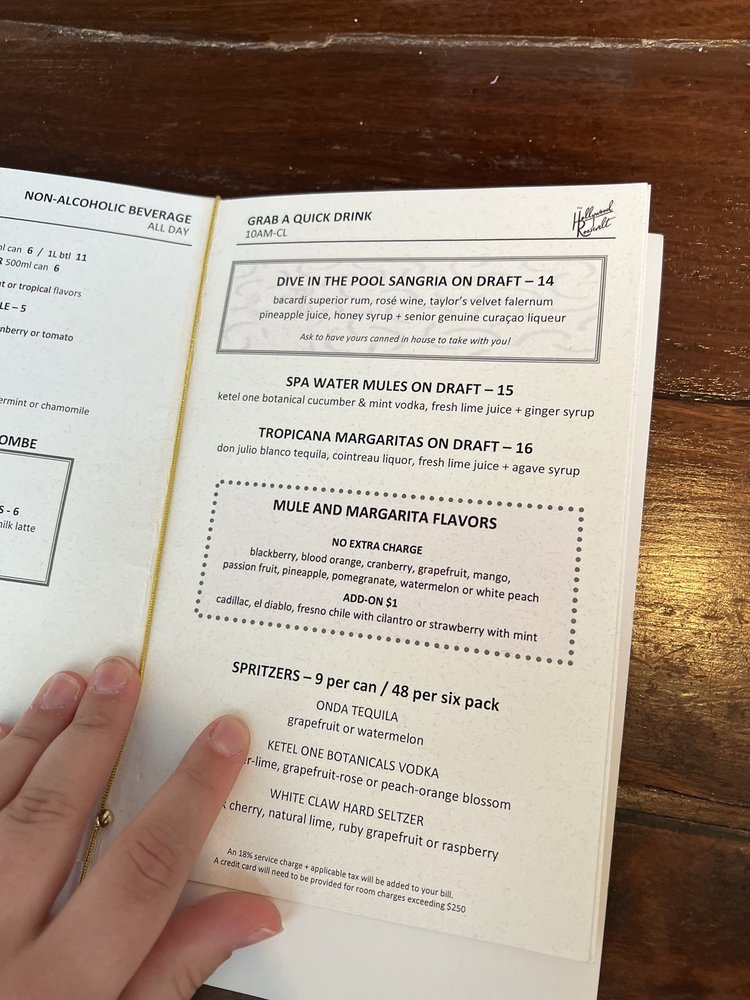 Introducing Tropicana Hollywood, a trendy lounge located at the Hollywood Roosevelt Hotel in Hollywood, CA. This upscale establishment offers a variety of amenities such as outdoor seating, a pool table, valet parking, and a full bar. The menu boasts popular cocktails like Bikini Kill and Barracuda, giving guests a unique and flavorful experience. Customers praise the quality of the seafood tower and whimsical poolside cocktails topped with fresh fruit skewers. With a relaxed atmosphere and attentive staff, Tropicana Hollywood is the perfect spot for a night out with friends or a romantic date. Don't miss out on the chance to enjoy delicious drinks and dine by the pool at this iconic Hollywood hotspot.