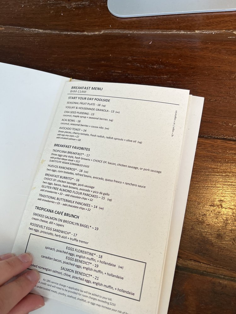 Tropicana Hollywood Menu (2025 Update)